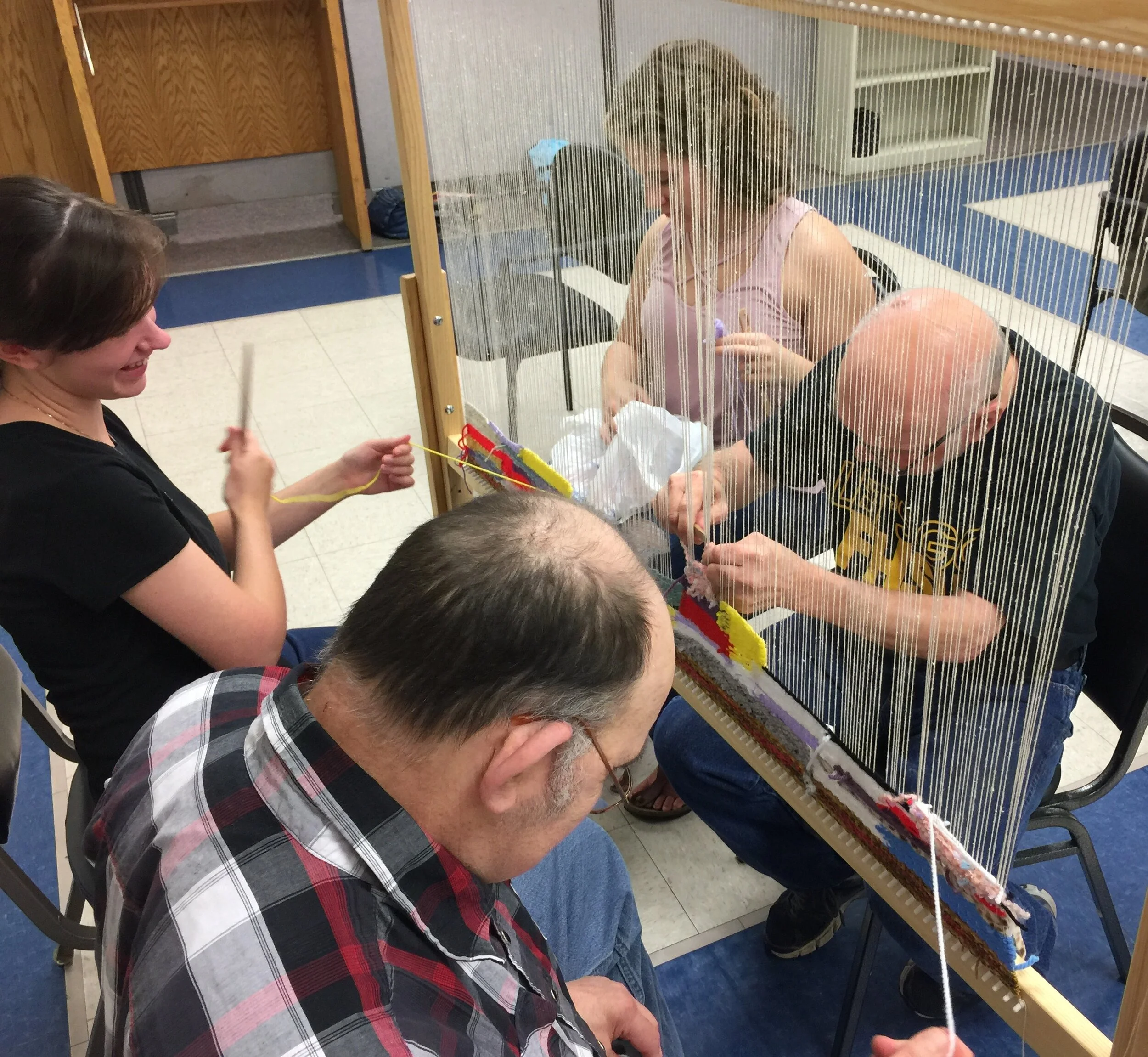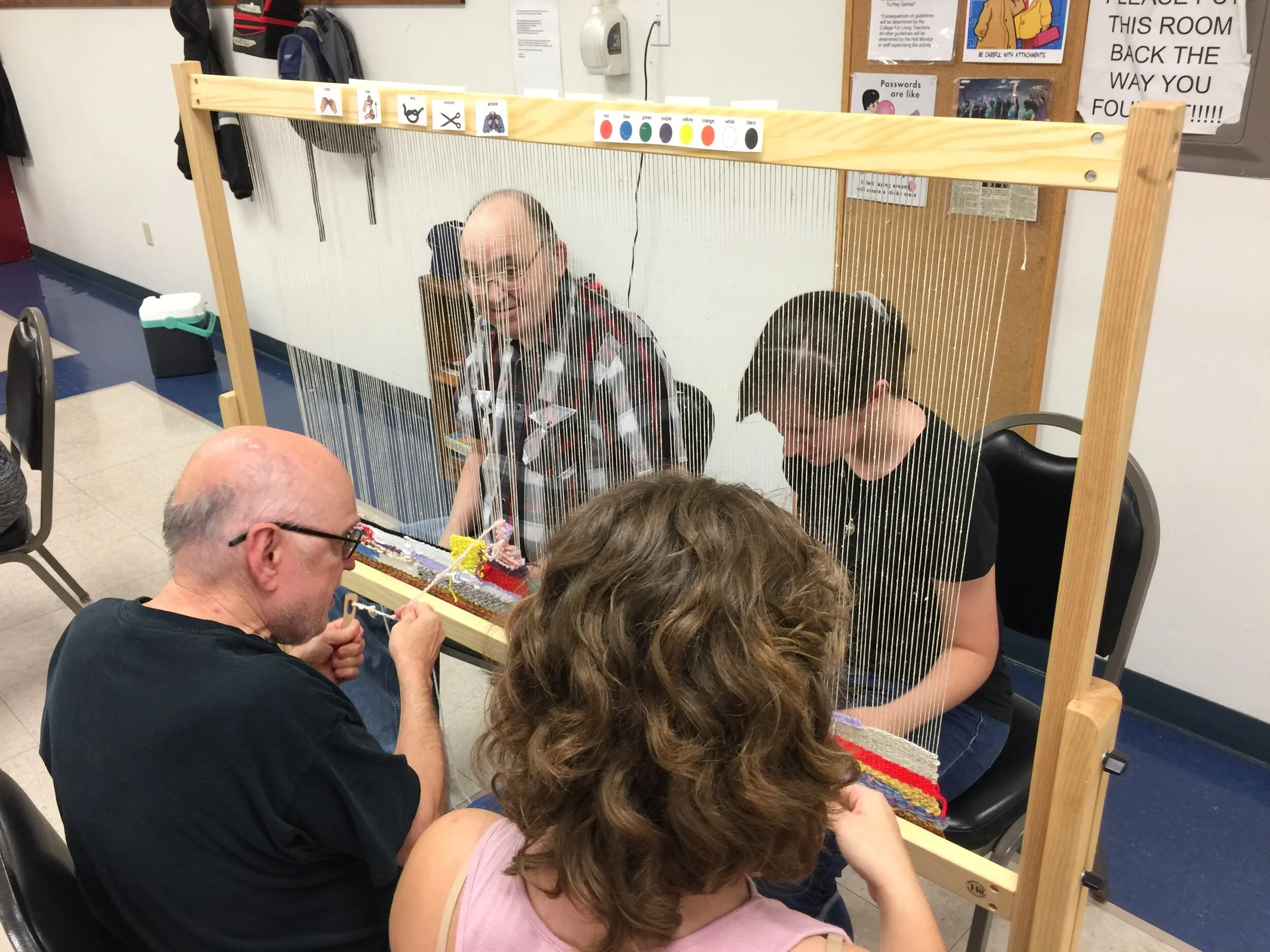 This collaboration included an underrepresented community in the arts, the clients of DSNWK, and teach skills in the arts and crafts but also serve as an extension of their expression and voices through color, texture and design. The clients of DSNWK have a broad range of special needs, including autism, downs syndrome and other cognitive disabilities. Professor Schmierbach and the students of FHSU will serve as collaborative leaders by weaving the rugs, they will prep materials, teach weaving techniques and also assist in design and construction.